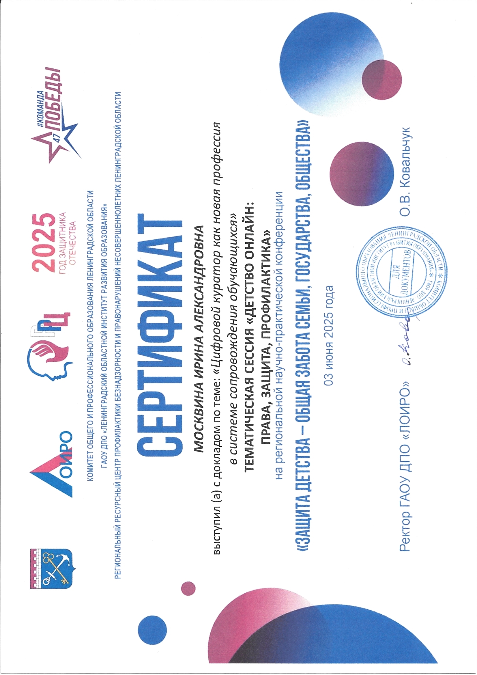 Я предупрежден(-а), что может производиться фото и видеосъемка с моим участием (с участием моего несовершеннолетнего ребенка) и согласен(-сна) с тем, что полученные фото и видеоматериалы могут быть использованы АНО ДПО «ЦОПП АО» в информационных, презентационных, отчетных и других целях, связанных с деятельностью образовательной организации, в т.ч. опубликованы в СМИ, на сайте организации и других онлайн платформах.