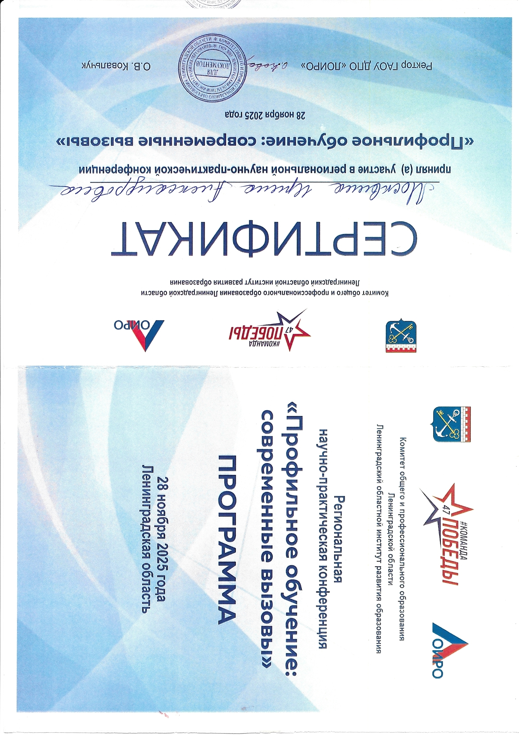 Проставляя отметку, я выражаю свое согласие на обработку моих персональных данных (персональных данных моего несовершеннолетнего ребёнка) и на совершение Оператором (АНО ДПО «ЦОПП АО») действий, предусмотренных п. 3 ст. 3 Федерального закона от 27.07.2006г. № 152-ФЗ «О персональных данных», а именно: сбор, запись, систематизацию, накопление, хранение, уточнение (обновление, изменение), извлечение, использование, передачу (распространение, предоставление, доступ), обезличивание, блокирование, удаление, уничтожение персональных данных; обработка персональных данных может осуществляться как с использованием средств автоматизации, так и без их использования (на бумажных носителях); со всеми данными, которые находятся в распоряжении Оператора с целью достижения целей, предусмотренных законом; для осуществления и выполнения возложенных законодательством Российской Федерации функций, полномочий и обязанностей АНО ДПО «ЦОПП АО», следующих моих персональных данных (персональных данных моего несовершеннолетнего ребёнка), переданных мною лично Оператору, а также полученных Оператором с моего письменного согласия от третьей стороны: фамилия, имя, отчество (в том числе предыдущие); дата, месяц, год рождения; пол; гражданство; СНИЛС; сведения о постановке на налоговый учет (ИНН); адрес места жительства; адрес регистрации; электронная почта; номер мобильного телефона; данные документа, удостоверяющего личность; данные документа, содержащиеся в свидетельстве о рождении; сведения об образовании (наименование учебного заведения, год окончания, документ об образовании, квалификация специальность), данные о профессии, должность и место работы, иные сведения, необходимые для реализации указанных выше целей.